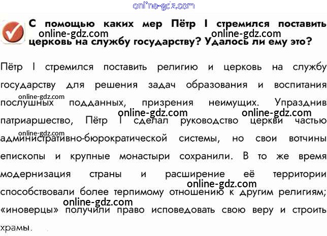 Готовые домашние задания по Истории за 8 класс Учебник Арсентьев, Курукин 2016 - Вопросы в начале параграфа §8. Церковная реформа. Положение традиционных конфессий 1
