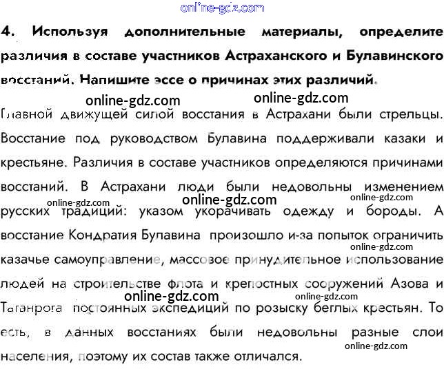 Готовые домашние задания по Истории за 8 класс Учебник Арсентьев, Курукин 2016 - Думаем, сравниваем, размышляем §9. Социальные и национальные движения. Оппозиция реформам 4