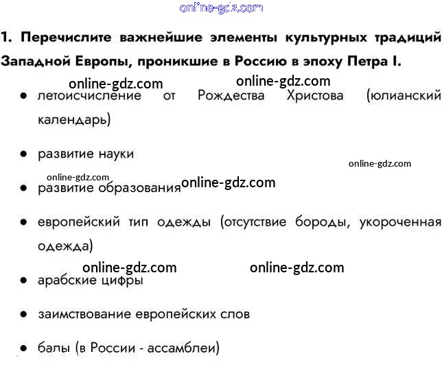 Готовые домашние задания по Истории за 8 класс Учебник Арсентьев, Курукин 2016 - Думаем, сравниваем, размышляем §10. Перемены в культуре России в годы Петровских реформ 1