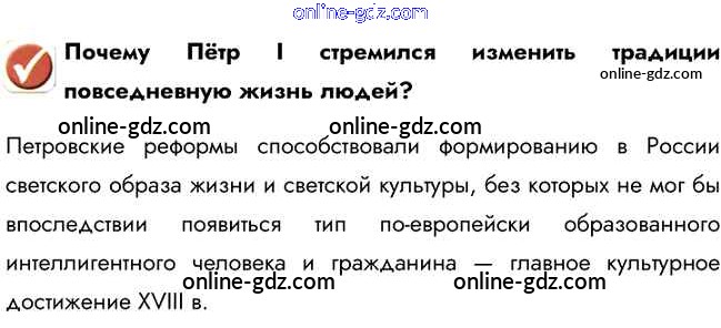 Готовые домашние задания по Истории за 8 класс Учебник Арсентьев, Курукин 2016 - Вопросы в начале параграфа §11. Повседневная жизнь и быт при Петре I 1