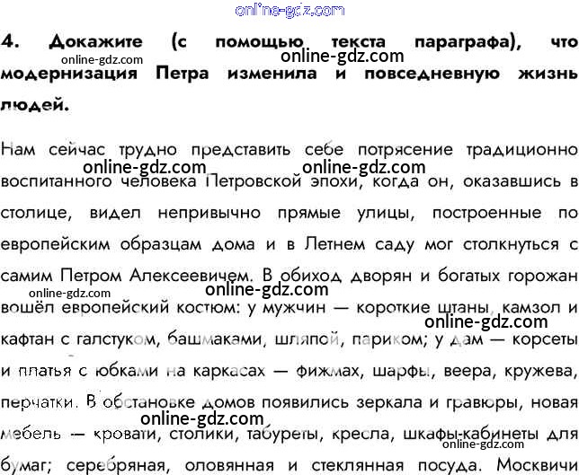 Готовые домашние задания по Истории за 8 класс Учебник Арсентьев, Курукин 2016 - Думаем, сравниваем, размышляем §11. Повседневная жизнь и быт при Петре I 4
