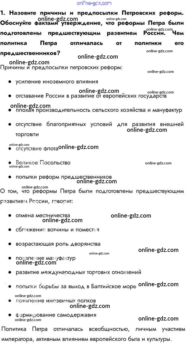 Готовые домашние задания по Истории за 8 класс Учебник Арсентьев, Курукин 2016 - Повторяем и делаем выводы Глава I. Россия в эпоху преобразований Петра I 1