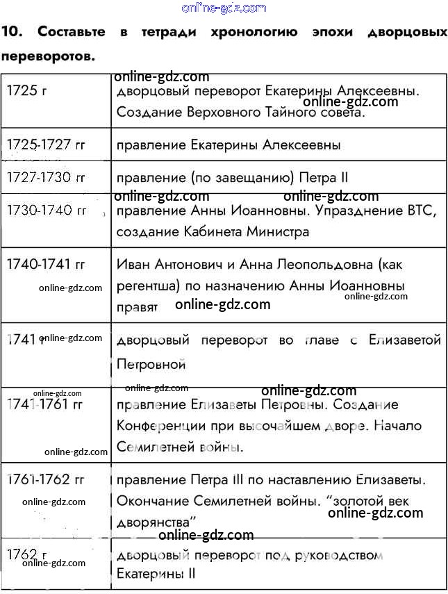 Готовые домашние задания по Истории за 8 класс Учебник Арсентьев, Курукин 2016 - Вопросы и задания §13-14. Эпоха дворцовых переворотов (1725—1762) 10