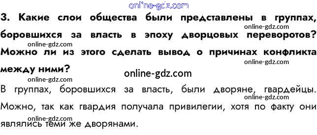 Готовые домашние задания по Истории за 8 класс Учебник Арсентьев, Курукин 2016 - Вопросы и задания §13-14. Эпоха дворцовых переворотов (1725—1762) 3