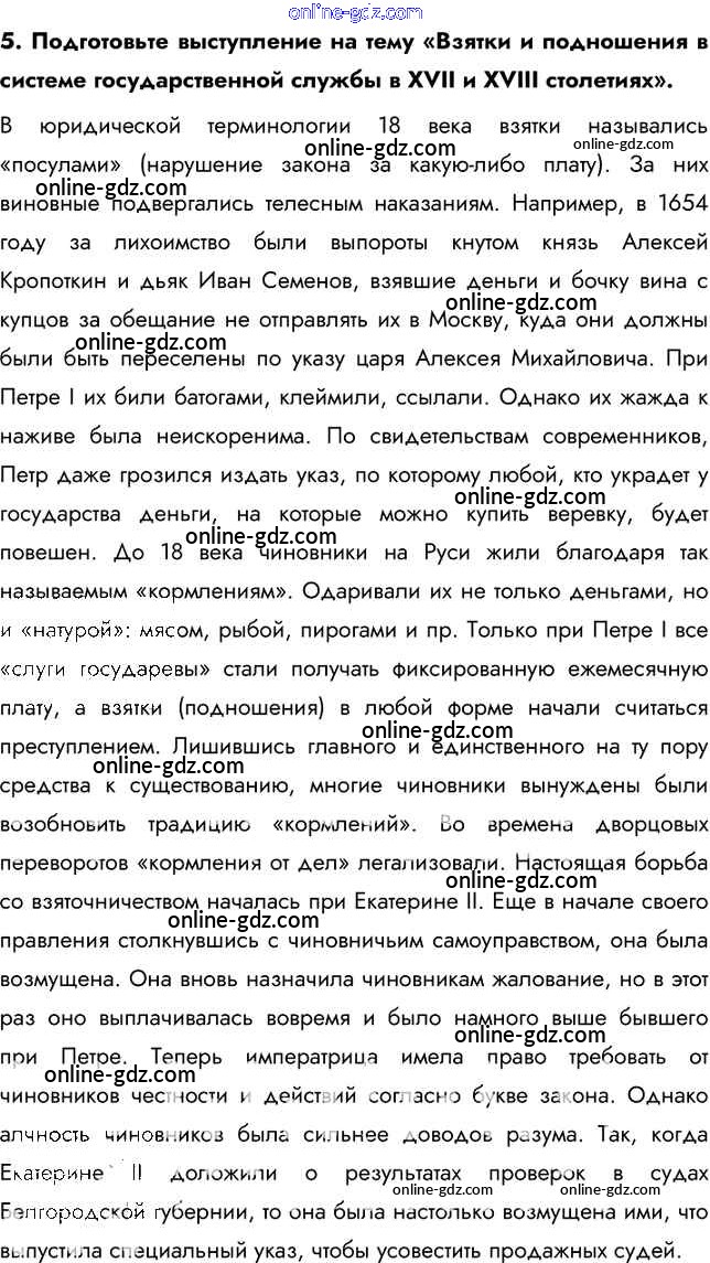 Готовые домашние задания по Истории за 8 класс Учебник Арсентьев, Курукин 2016 - Думаем, сравниваем, размышляем §15. Внутренняя политика и экономика России в 1725—1762 гг. 5
