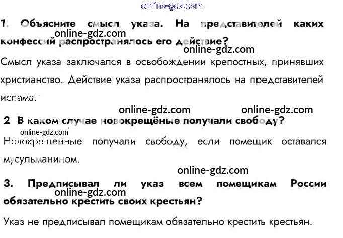 Готовые домашние задания по Истории за 8 класс Учебник Арсентьев, Курукин 2016 - Изучаем документ Национальная и религиозная политика в 1725—1762 гг. стр.109