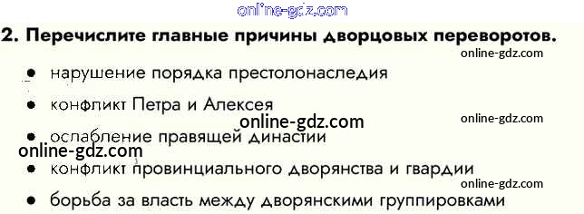 Готовые домашние задания по Истории за 8 класс Учебник Арсентьев, Курукин 2016 - Повторяем и делаем выводы Глава II. Россия при наследниках Петра: эпоха дворцовых переворотов 2
