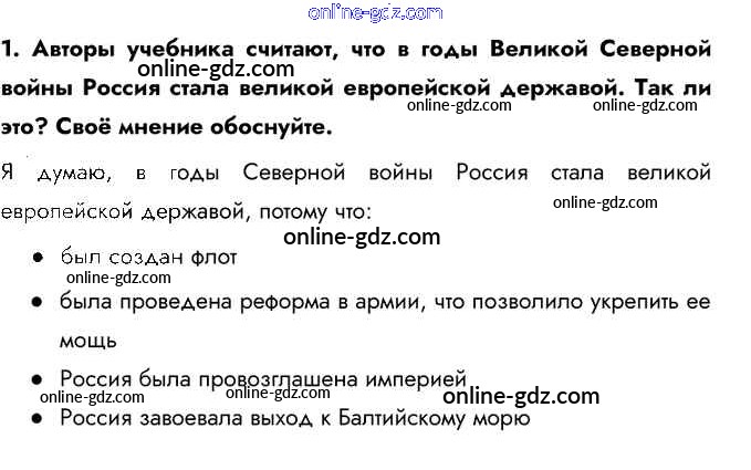 Готовые домашние задания по Истории за 8 класс Учебник Арсентьев, Курукин 2016 - Думаем, сравниваем, размышляем §17. Россия в системе международных отношений 1