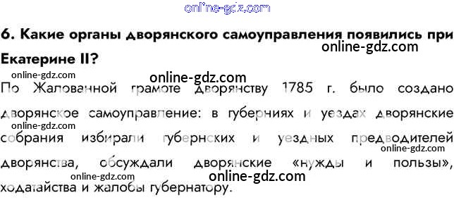 Готовые домашние задания по Истории за 8 класс Учебник Арсентьев, Курукин 2016 - Вопросы и задания §18. Внутренняя политика Екатерины II 6