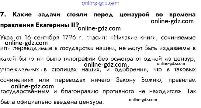 Готовые домашние задания по Истории за 8 класс Учебник Арсентьев, Курукин 2016 - Вопросы и задания §18. Внутренняя политика Екатерины II 7