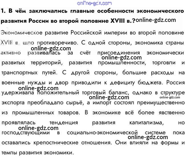 Готовые домашние задания по Истории за 8 класс Учебник Арсентьев, Курукин 2016 - Вопросы и задания §19. Экономическое развитие России при Екатерине II 1