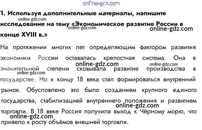 Готовые домашние задания по Истории за 8 класс Учебник Арсентьев, Курукин 2016 - Думаем, сравниваем, размышляем §19. Экономическое развитие России при Екатерине II 1