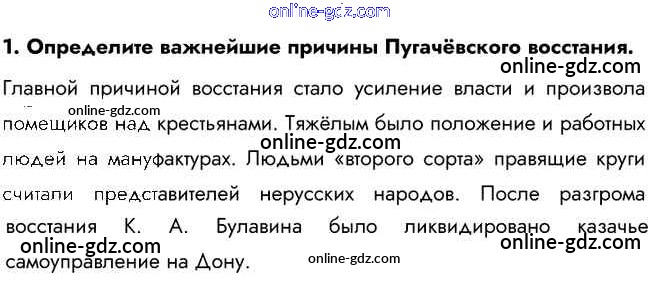 Готовые домашние задания по Истории за 8 класс Учебник Арсентьев, Курукин 2016 - Вопросы и задания §21. Восстание под предводительством Е. И. Пугачёва 1