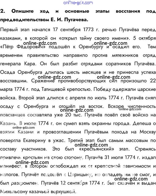Готовые домашние задания по Истории за 8 класс Учебник Арсентьев, Курукин 2016 - Вопросы и задания §21. Восстание под предводительством Е. И. Пугачёва 2