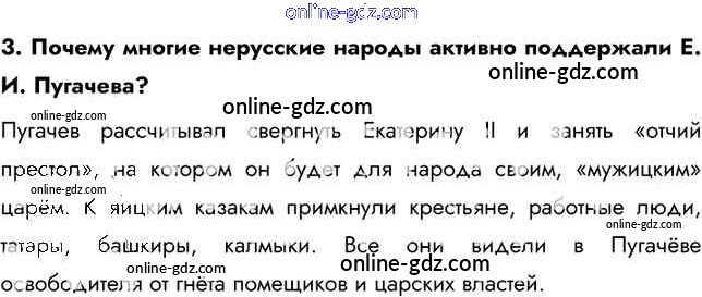 Готовые домашние задания по Истории за 8 класс Учебник Арсентьев, Курукин 2016 - Вопросы и задания §21. Восстание под предводительством Е. И. Пугачёва 3