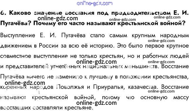 Готовые домашние задания по Истории за 8 класс Учебник Арсентьев, Курукин 2016 - Вопросы и задания §21. Восстание под предводительством Е. И. Пугачёва 6