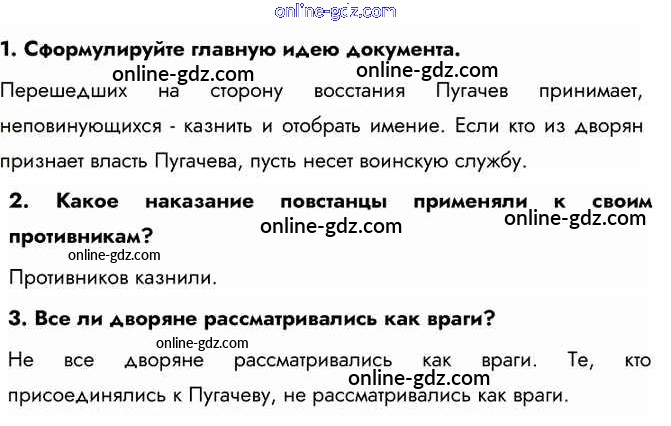 Готовые домашние задания по Истории за 8 класс Учебник Арсентьев, Курукин 2016 - Изучаем документ §21. Восстание под предводительством Е. И. Пугачёва стр.32