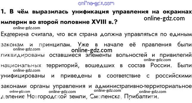 глава 3 / народы России. Национальная и религиозная политика Екатерины II / вопрос, задание / 1