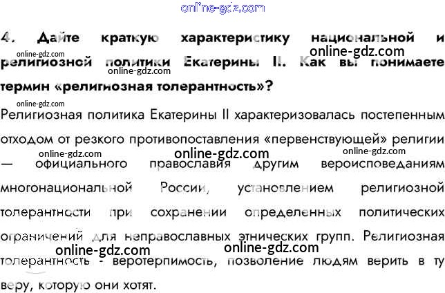 Готовые домашние задания по Истории за 8 класс Учебник Арсентьев, Курукин 2016 - Думаем, сравниваем, размышляем Народы России. Национальная и религиозная политика Екатерины II 4
