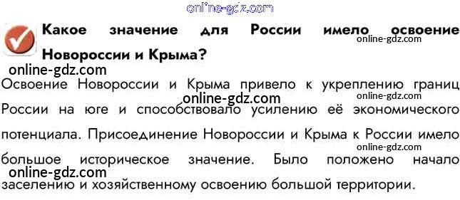 Готовые домашние задания по Истории за 8 класс Учебник Арсентьев, Курукин 2016 - Вопросы в начале параграфа §23. Начало освоения Новороссии и Крыма 1