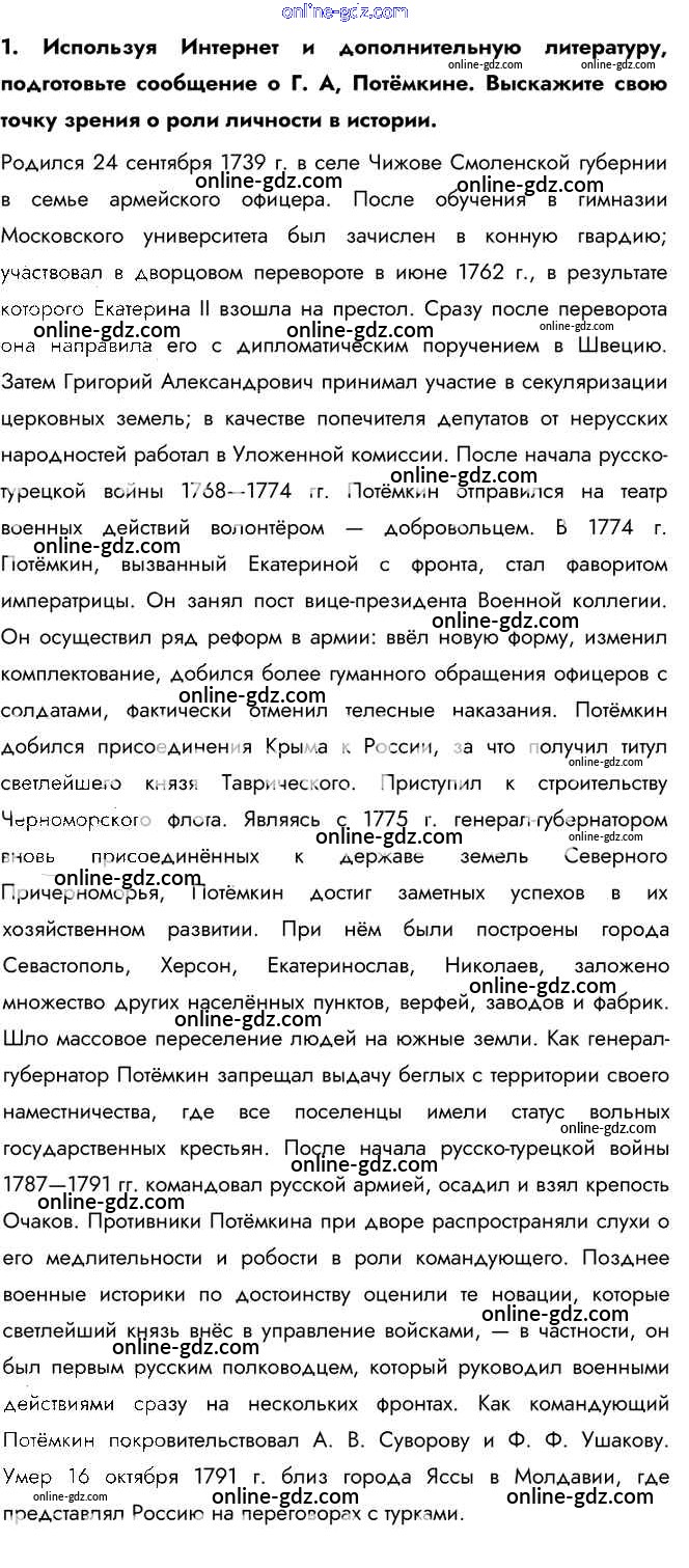 Готовые домашние задания по Истории за 8 класс Учебник Арсентьев, Курукин 2016 - Думаем, сравниваем, размышляем §23. Начало освоения Новороссии и Крыма 1