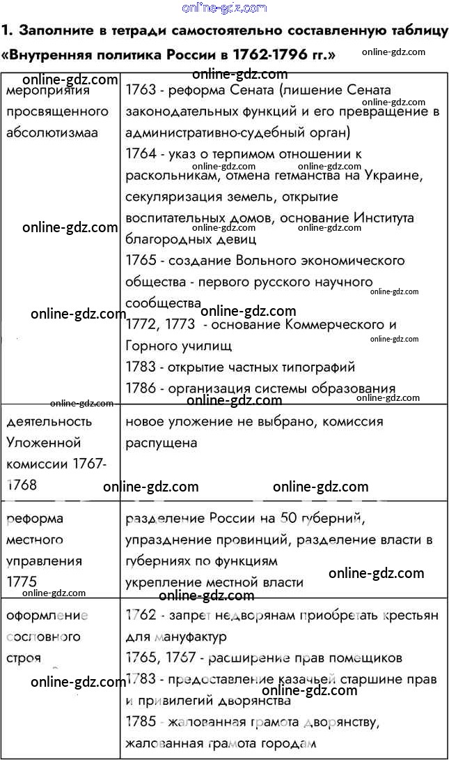 Готовые домашние задания по Истории за 8 класс Учебник Арсентьев, Курукин 2016 - Повторяем и делаем выводы Глава III. Российская империя при Екатерине II 1