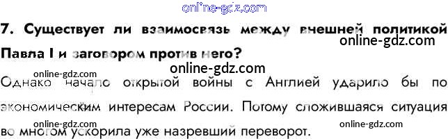 Готовые домашние задания по Истории за 8 класс Учебник Арсентьев, Курукин 2016 - Вопросы и задания §25. Внешняя политика Павла I 7