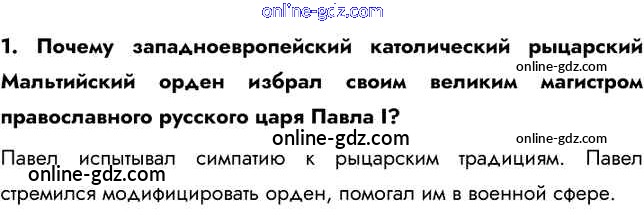 Готовые домашние задания по Истории за 8 класс Учебник Арсентьев, Курукин 2016 - Думаем, сравниваем, размышляем §25. Внешняя политика Павла I 1
