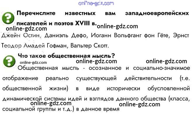 Готовые домашние задания по Истории за 8 класс Учебник Арсентьев, Курукин 2016 - Вопросы Общественная мысль, публицистика, литература, пресса стр.74