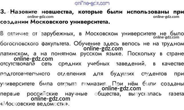 Готовые домашние задания по Истории за 8 класс Учебник Арсентьев, Курукин 2016 - Вопросы и задания Образование в России в XVIII в. 3