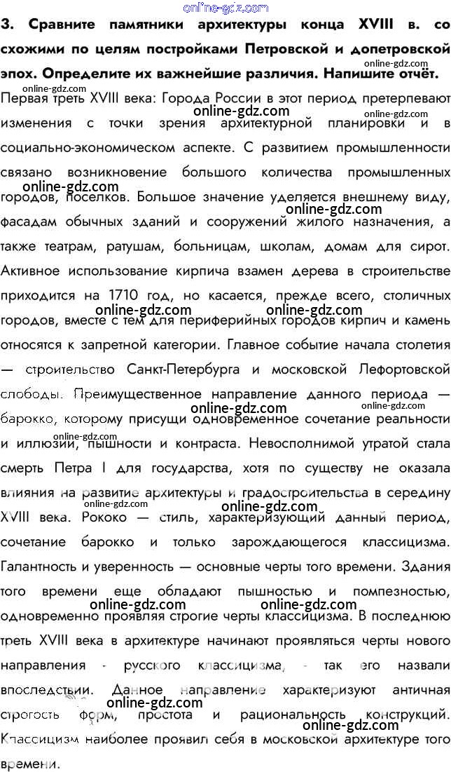 Готовые домашние задания по Истории за 8 класс Учебник Арсентьев, Курукин 2016 - Думаем, сравниваем, размышляем Русская архитектура XVIII в. 3
