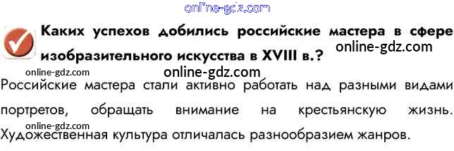 Готовые домашние задания по Истории за 8 класс Учебник Арсентьев, Курукин 2016 - Вопросы в начале параграфа Живопись и скульптура 1