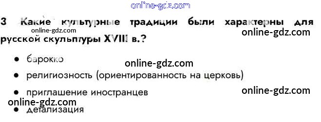 Готовые домашние задания по Истории за 8 класс Учебник Арсентьев, Курукин 2016 - Вопросы и задания Живопись и скульптура 3
