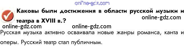 Готовые домашние задания по Истории за 8 класс Учебник Арсентьев, Курукин 2016 - Вопросы в начале параграфа Музыкальное и театральное искусство 1