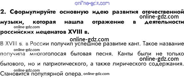 Готовые домашние задания по Истории за 8 класс Учебник Арсентьев, Курукин 2016 - Вопросы и задания Музыкальное и театральное искусство 2