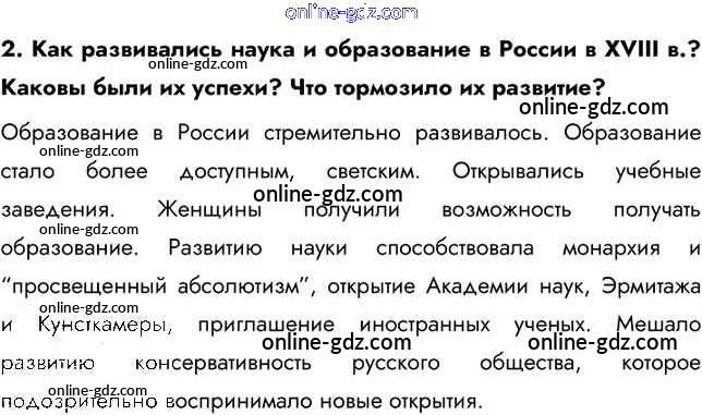 Готовые домашние задания по Истории за 8 класс Учебник Арсентьев, Курукин 2016 - Повторяем и делаем выводы Глава V. Культурное пространство Российской империи в XVIII в. 2