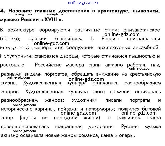 Готовые домашние задания по Истории за 8 класс Учебник Арсентьев, Курукин 2016 - Повторяем и делаем выводы Глава V. Культурное пространство Российской империи в XVIII в. 4