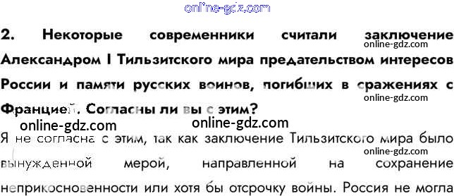 Готовые домашние задания по Истории за 9 класс Учебник Арсентьев, Данилов 2016 - Думаем, сравниваем, размышляем §3. Внешняя политика Александра I в 1801-1812 гг. 2