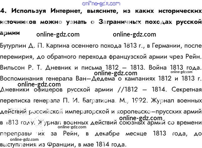 Готовые домашние задания по Истории за 9 класс Учебник Арсентьев, Данилов 2016 - Думаем, сравниваем, размышляем §5. Заграничные походы русской армии. 4