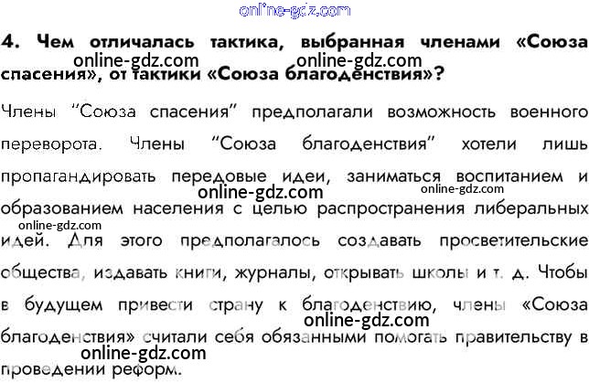 Готовые домашние задания по Истории за 9 класс Учебник Арсентьев, Данилов 2016 - Вопросы и задания §8-9. Общественное движение при Александре I. Выступление декабристов 4