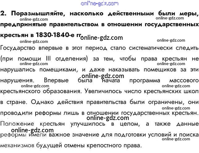 Готовые домашние задания по Истории за 9 класс Учебник Арсентьев, Данилов 2016 - Думаем, сравниваем, размышляем §11. Социально-экономические развитие страны во второй четверти XIX в. 2