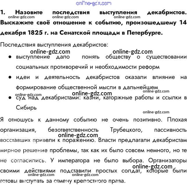 Готовые домашние задания по Истории за 9 класс Учебник Арсентьев, Данилов 2016 - Повторяем и делаем выводы Глава II. Россия во второй четверти XIX в. 1