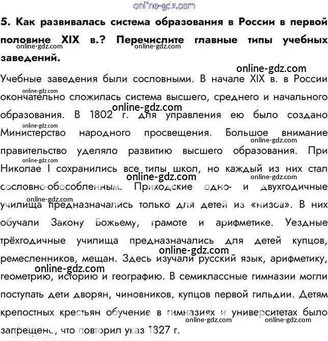 Готовые домашние задания по Истории за 9 класс Учебник Арсентьев, Данилов 2016 - Повторяем и делаем выводы Глава II. Россия во второй четверти XIX в. 5