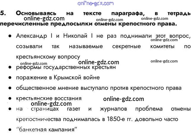 Готовые домашние задания по Истории за 9 класс Учебник Арсентьев, Данилов 2016 - Вопросы и задания § 15. Европейская индустриализация и предпосылки реформ в России 5