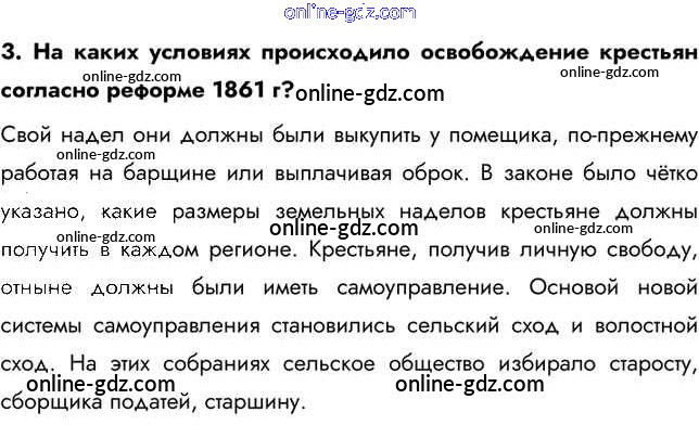 Готовые домашние задания по Истории за 9 класс Учебник Арсентьев, Данилов 2016 - Вопросы и задания § 16. Александр II: начало правления. Крестьянская реформа 1861 г. 3