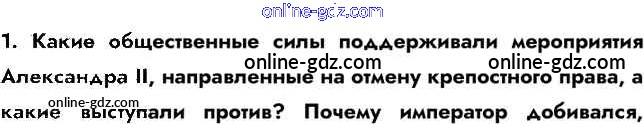 Готовые домашние задания по Истории за 9 класс Учебник Арсентьев, Данилов 2016 - Думаем, сравниваем, размышляем § 16. Александр II: начало правления. Крестьянская реформа 1861 г. 1