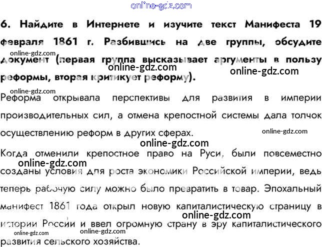 Готовые домашние задания по Истории за 9 класс Учебник Арсентьев, Данилов 2016 - Думаем, сравниваем, размышляем § 16. Александр II: начало правления. Крестьянская реформа 1861 г. 6