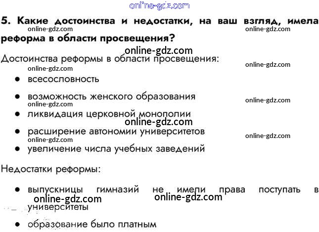 Готовые домашние задания по Истории за 9 класс Учебник Арсентьев, Данилов 2016 - Думаем, сравниваем, размышляем § 17. Реформы 1860-1870-х гг.: социальная и правовая модернизация 5