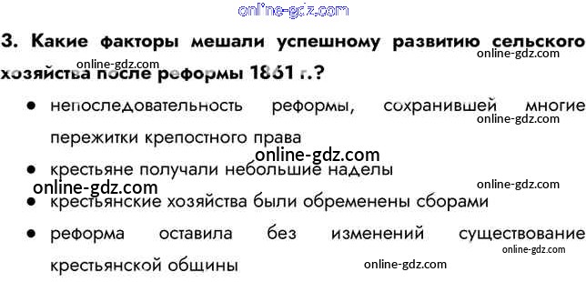Готовые домашние задания по Истории за 9 класс Учебник Арсентьев, Данилов 2016 - Вопросы и задания § 18. Социально-экономическое развитие страны в пореформенный период 3