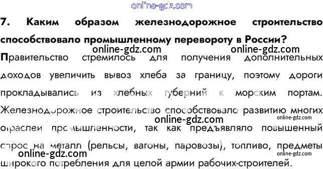 Готовые домашние задания по Истории за 9 класс Учебник Арсентьев, Данилов 2016 - Вопросы и задания § 18. Социально-экономическое развитие страны в пореформенный период 7